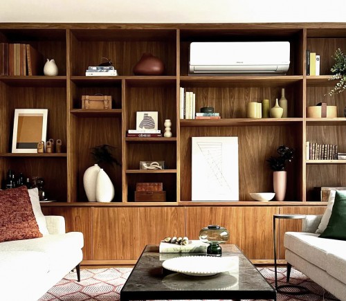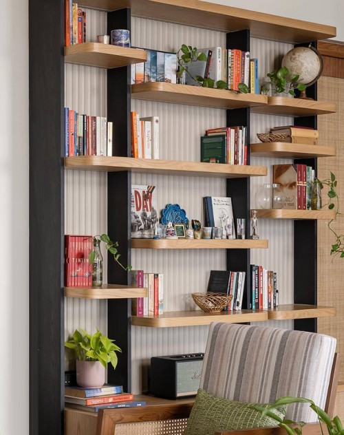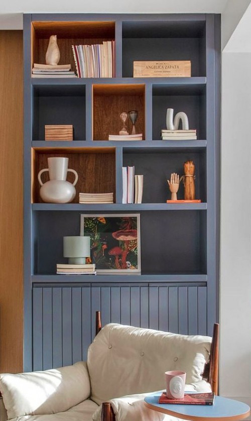 Важно, чтобы стеллаж хорошо вписывался в общие цветовые и стилистические решения, а также, чтобы предметы на нем подходили для обеих сторон комнаты.