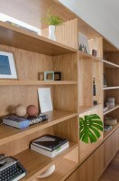Всё чаще у нас заказывают на основе из дуба или шпонированные стеллажи, что позволяет добиться выразительно рисунка даже с простыми шпонами массива, не говоря уже об эксклюзивных вариантах. Можно изготовить просто изюминку для интерьера дома. |